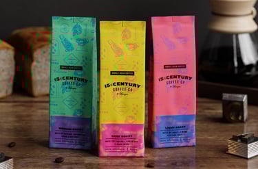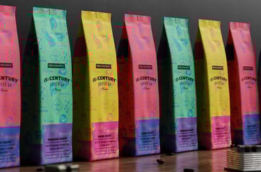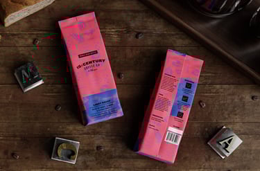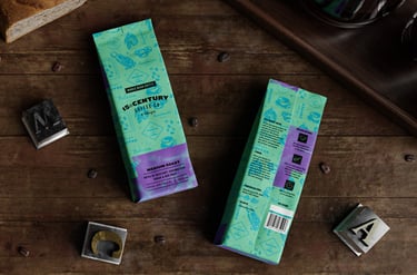 15th Century Coffee é uma jovem empresa de café africana. Seu proprietário possui uma paixão por colecionar máquinas antigas de todos os tipos. Esta paixão virou inspiração para nosso projeto, onde naming, logotipo e embalagens foram inspirados em antigos processos de impressões tipográficas, que surgiram aproximadamente no século XV.