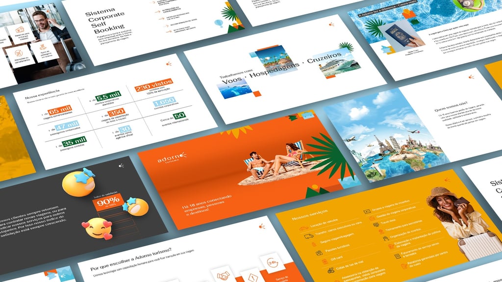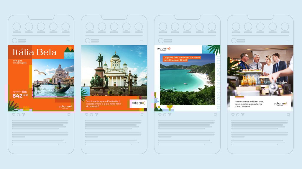 Connecting companies, people and destinations for 18 years, Adorno Tourism needed a new brand and visual identity that conveyed more modernity and professionalism, in line with the new business moment. With the new identity, we set out to be closer, more welcoming, transmitting a lot of energy, joy and vibrancy.