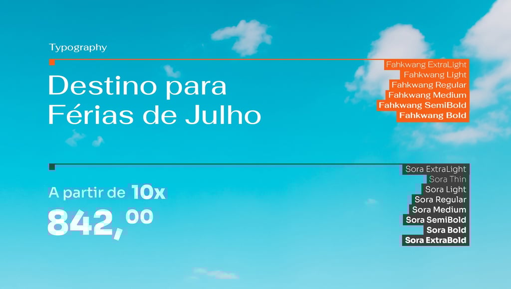 For the brand symbol, we represent the stages of research, planning and realization, uniting the elements of the magnifying glass (research), a pin on the map (planning) and the sun representing the realization of the trip. For colors, we detected that more than 80% of companies in the Brazilian tourism segment, use cold shades of blue in their brands and identities. As a differentiation strategy, a vibrant and warm color was defined to stand out from the competition.