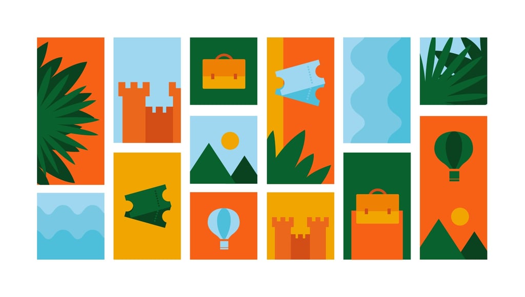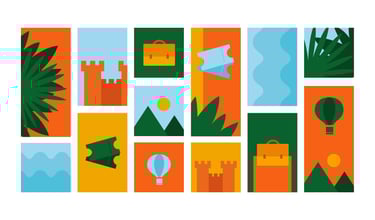 To visually enrich the materials and represent the various travel options that the company serves, we created representative illustrations of the main possibilities. They function as individual elements that can compose pieces of different shapes, colors and sizes.