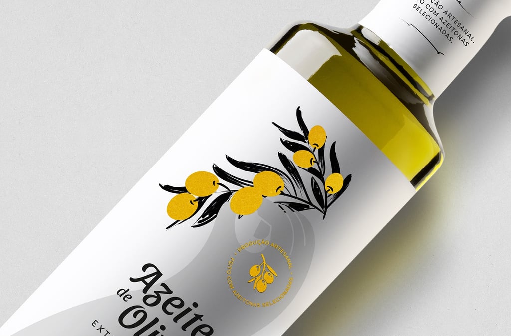 Pensando neste público, desenvolvemos rótulos adesivos que trazem uma estética limpa e minimalista. Para reforçar o conceito de produto seletivo, uma ilustração de mão colhendo as azeitonas perfeitas foi adicionada ao fundo, e para reforçar o conceito de artesanal, ilustrações manuais das folhas de oliva foram desenvolvidas no estilo pintura. Os adesivos possuem ainda impressão especial dourada (hot stamping), nas azeitonas e no selo frontal, trazendo um visual ainda mais refinado para o produto.